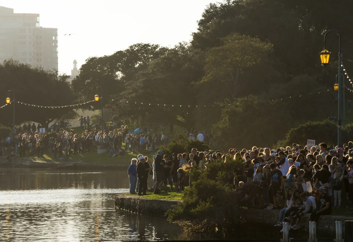 Amongst a crowd of thousands, one woman raised both of her hands and held two peace signs in the air. Like dominoes, one by one every person surrounding a still body of water raised there hands as well. The moment was impromptu, but embodied solidarity. I was brought to tears.